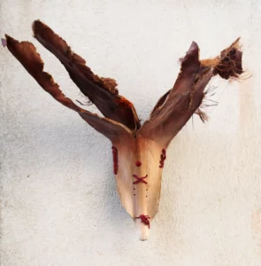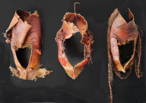 They spontaneously remind me of African masks that line up as if for a memorial family photo. Just bark but so present…