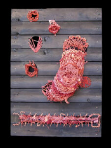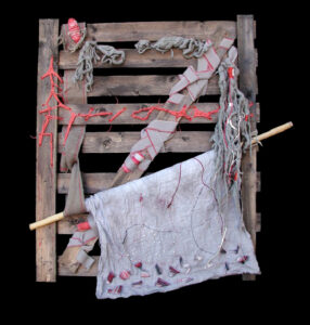 I reproduced these lattices of stone and wood in textile material. It is a revisited mesh. These two pieces were made in the heat of summer, in the Var, out of climatic empathy…