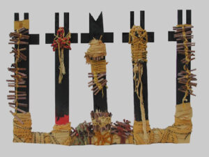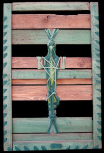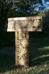 ‘La Ruse’ (Cunning) panels are an attempt to imitate the beautiful natural weave of palm tree bark. I reweaved the empty spaces and the missing parts.